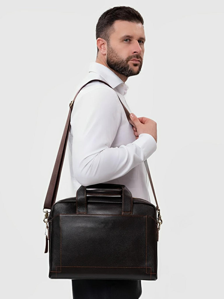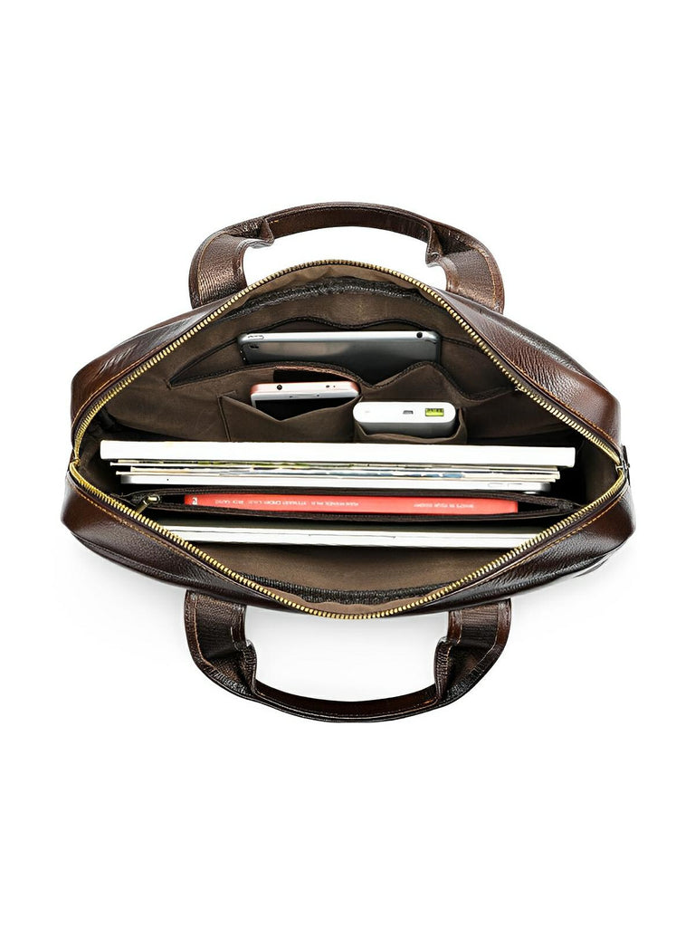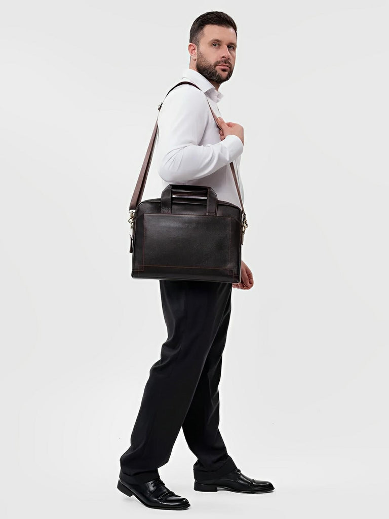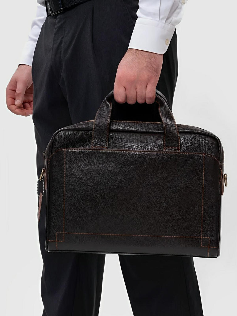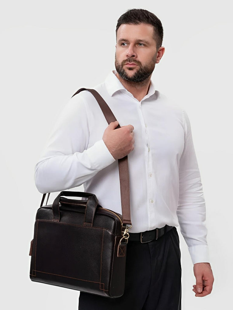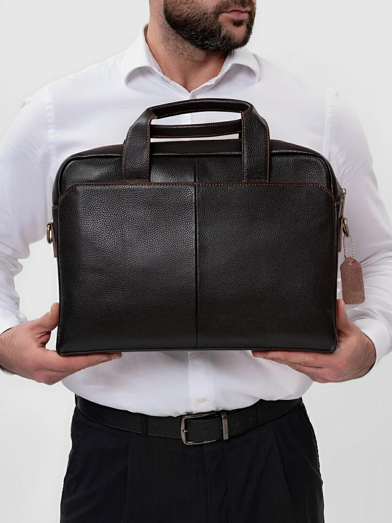 Ontdek deze leren heren tas, ideaal voor professionals en studenten. Gemaakt van volnerfleer, combineert het duurzaamheid en verfijnde esthetiek. Perfect voor zakelijke reizen of zakenreizen, biedt deze aktetas een perfecte organisatie voor uw dagelijkse benodigdheden.