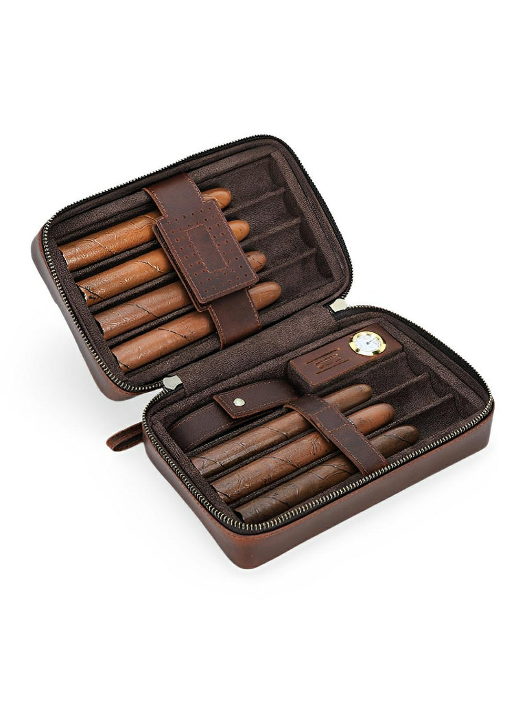 Deze leren sigarenkist is een etui ontworpen voor veeleisende sigarenliefhebbers. Met een capaciteit van maximaal 7 sigaren biedt het een geoptimaliseerde opslagruimte voor een ideale bewaring. De binnenkant van zacht fluweel beschermt elke sigaar tegen schokken en overmatige vochtigheid.