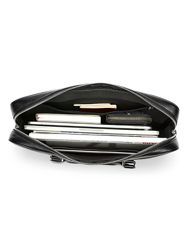 De verstelbare schouderband en de versterkte handvatten zorgen voor een comfortabele draagwijze, zowel in de hand als op de schouder. Het strakke ontwerp en de verzorgde afwerking in gegrain leather voegen een vleugje exclusiviteit toe aan uw stijl, perfect voor op kantoor of tijdens zakelijke reizen.