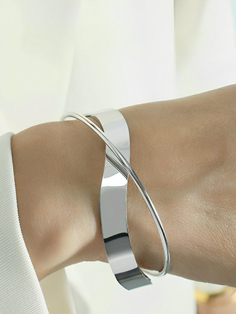 Open armband staal, onregelmatig ontwerp, geometrische stijl, minimalistisch, moderne OL, stedelijke mode, model Olympe