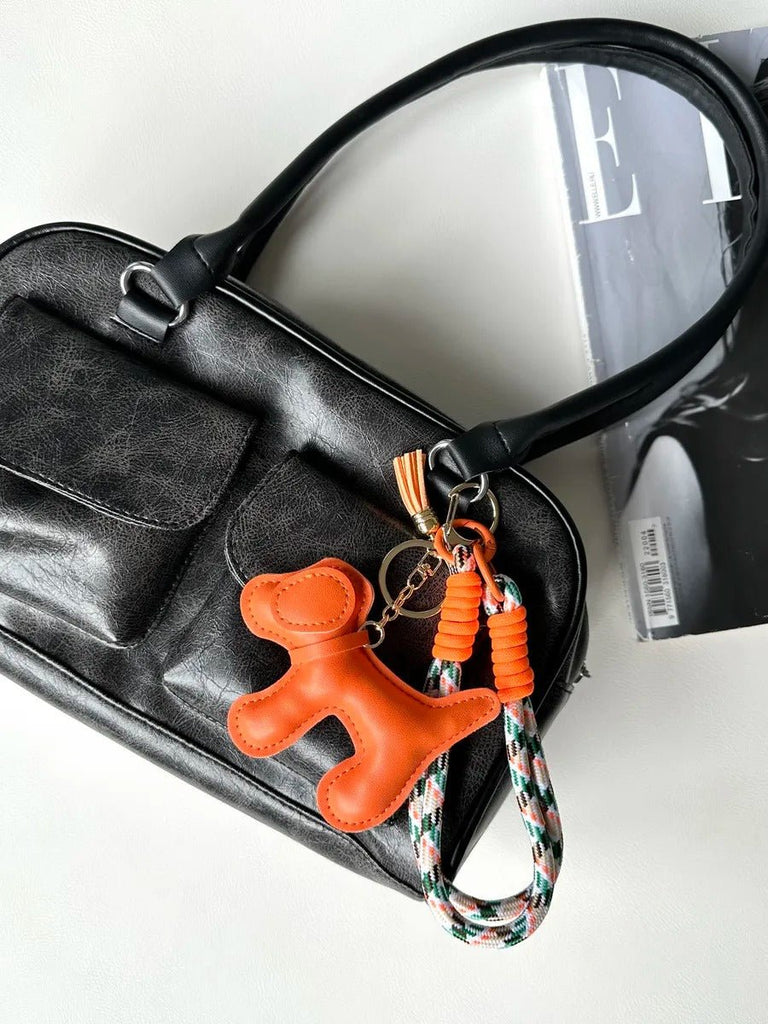 Voeg een vleugje fantasie toe aan uw dagelijks leven met dit tashanger in de vorm van een hond, een uniek stuk dat stijl en functionaliteit combineert. Gemaakt van zacht veganistisch imitatieleer en versierd met kleurrijke details zoals een klein gouden kettinkje en een bijpassende leren pompon, zal dit charmante accessoire vreugde en karakter toevoegen aan uw tas, sleutelbos of telefoonhoesje.