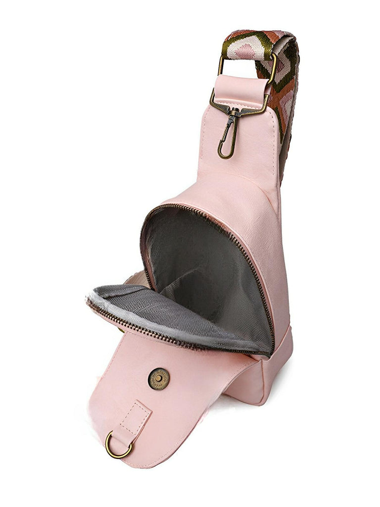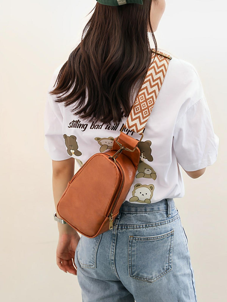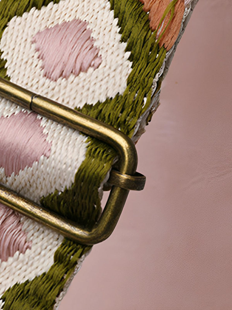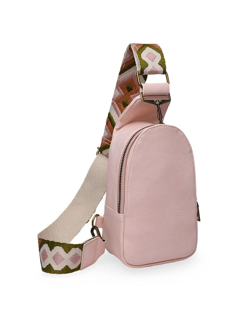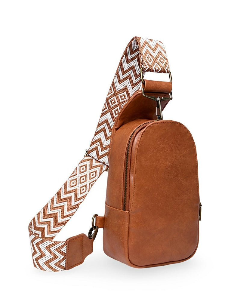 Ideaal voor dagelijkse uitjes of reizen, past deze tas perfect bij een casual of bohemien stijl. Het minimalistische ontwerp wordt versterkt door een brede schouderband met etnische patronen, wat een originele en moderne touch toevoegt.
