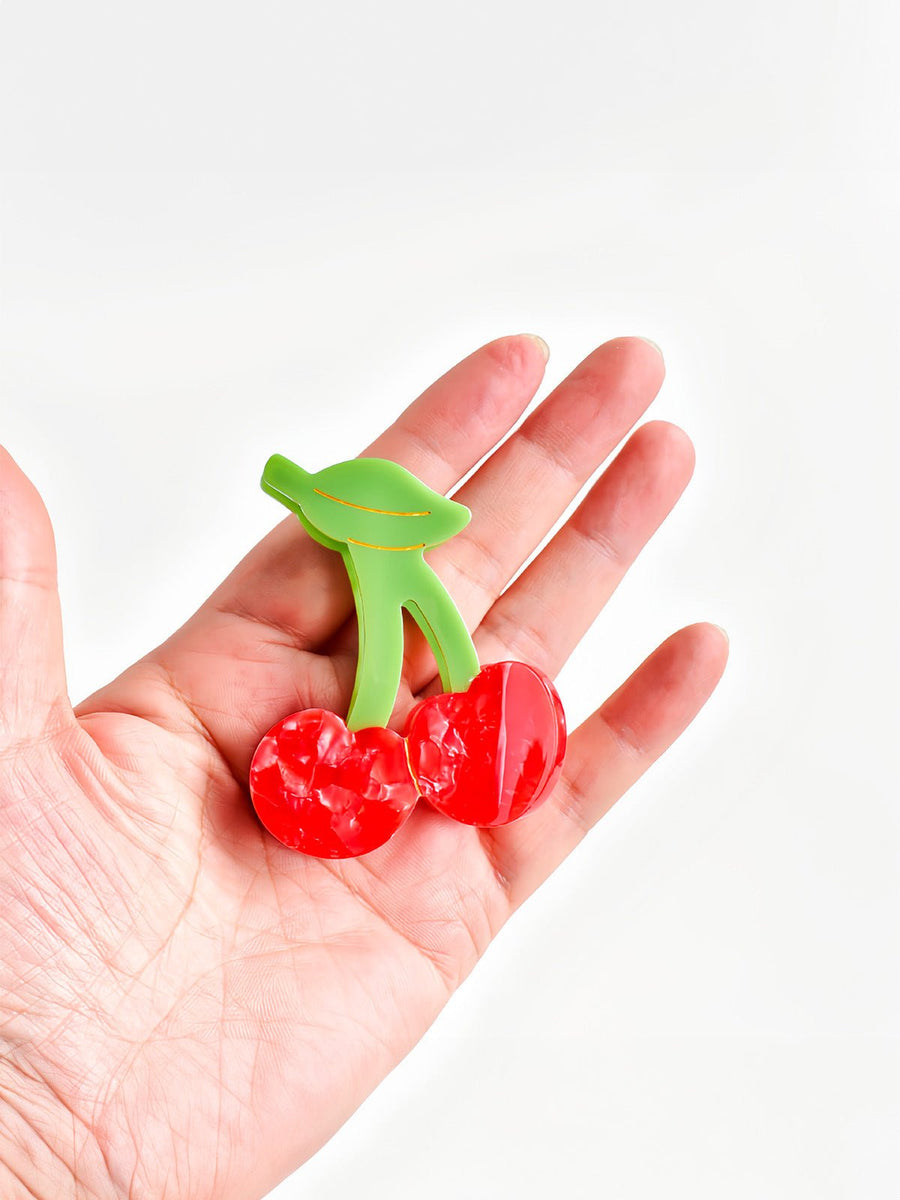 Apportez une touche de fraîcheur à vos coiffures avec cette pince à cheveux cerise au design ludique et coloré. Conçue en acrylique lisse et brillante, elle combine des nuances de vert tendre et rouge cerise pour un effet pétillant et joyeux. Sa structure solide à ressort intégré assure un maintien fiable tout au long de la journée, que vos cheveux soient fins ou épais.